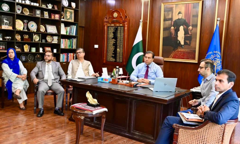 Islamabad, August 5, 2025: A high-level meeting was held at the CDA headquarters under the chairmanship of Chairman CDA and Chief Commissioner Islamabad, Muhammad Ali Randhawa. The meeting was attended by Member Administration and Estate Talat Mehmood, Member Environment Esfandyar Baloch, Member Engineering Syed Nafasat Raza, Member Planning Dr. Khalid Hafiz, Member Finance Tahir Naeem, Deputy Commissioner Islamabad, while representatives from Punjab Land and Revenue Authority (PLRA) and State Bank of Pakistan joined via video link.