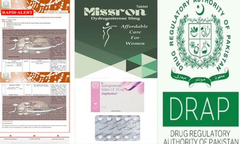 The counterfeit medicines flagged by DRAP include Missrone Tablets (Fegga Pharmaceutical), Quttefol OD Tablets (Adcok Pharmaceuticals), Depasrone Tablets (Alpine Laboratories), and Dropha Tablets (Himax Pharmaceutical).