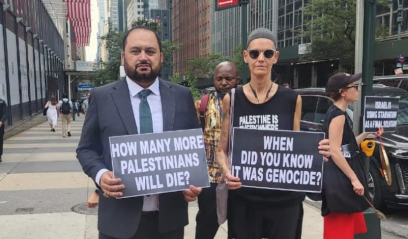 New York, September 24, 2025: Prime Minister’s Focal Person for the Youth Program, Syed Zeeshan Naqvi, joined a protest demonstration outside the United Nations General Assembly (UNGA) in support of Palestine, reaffirming Pakistan’s strong stance against Israeli aggression in Gaza.
