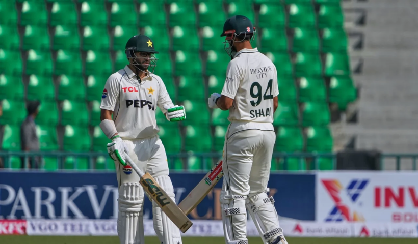However, Captain Shan Masood and Imam-ul-Haq stabilized the innings with a solid 161-run partnership for the second wicket, easing the early pressure. Both batters looked in fine touch — Shan scored a fluent 76 off 147 balls with nine boundaries and a six, while Imam, returning to Test cricket after nearly two years, crafted a classy 93 off 153 deliveries, including seven fours and a six.