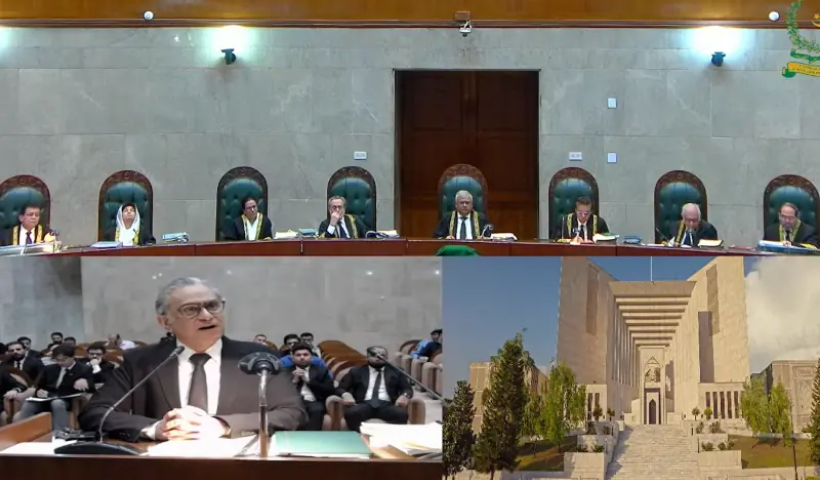 The bench, headed by Justice Aminuddin Khan, includes Justices Ayesha Malik, Mohammad Ali Mazhar, Jamal Khan Mandokhail, Syed Hasan Azhar Rizvi, Musarrat Hilali, Naeem Akhtar Afghan, and Shahid Bilal Hassan.