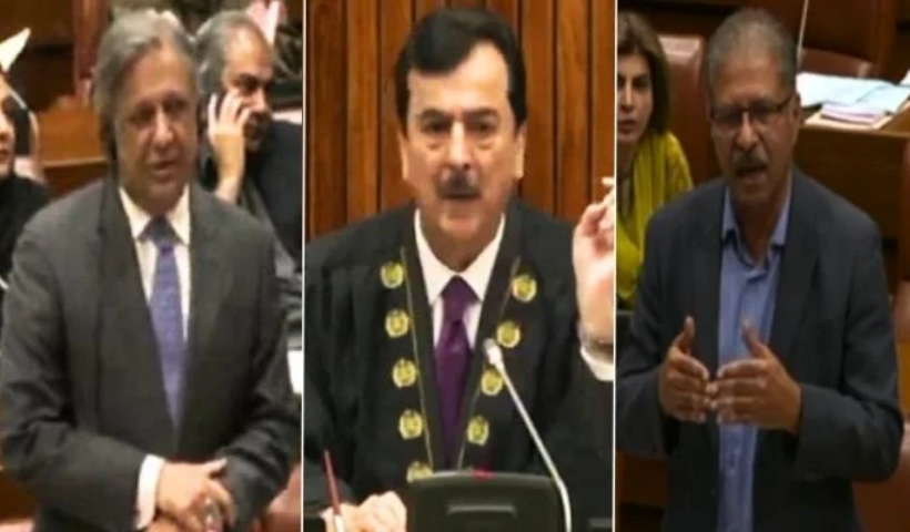 Senate Chairman Yousuf Raza Gilani presided over the session, which began with objections raised by PTI Senator Ali Zafar, who argued that PTI’s Saifullah Abro and JUI-F’s Ahmad Khan stood disqualified under Article 63-A after declaring on the Senate floor last week that they had resigned.