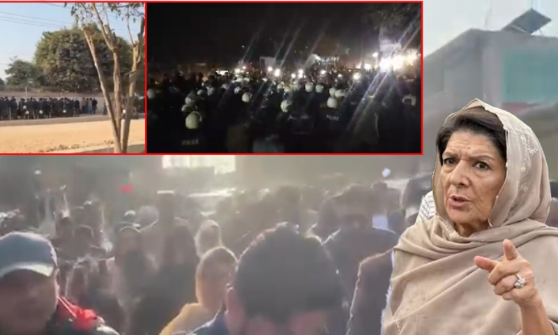 Aleema, along with her sisters Noreen Niazi and Dr Uzma Khan, were stopped at Factory Naka by police. PTI supporters immediately began chanting slogans and staged a sit-in, joined by Majlis Wahdaat-i-Muslimeen (MWM) Senator Allama Raja Nasir Abbas.