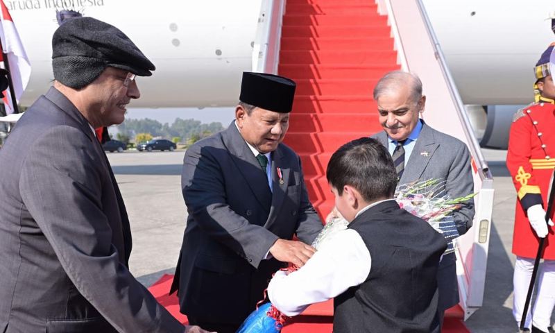 In a post on X, Prime Minister Shehbaz said he was honoured to host the Indonesian leader, noting that Pakistan and Indonesia “are bound together by a shared history, deep cultural affinity and a friendship rooted in mutual respect and solidarity.” He added that he looked forward to “meaningful engagements” aimed at further strengthening the partnership.