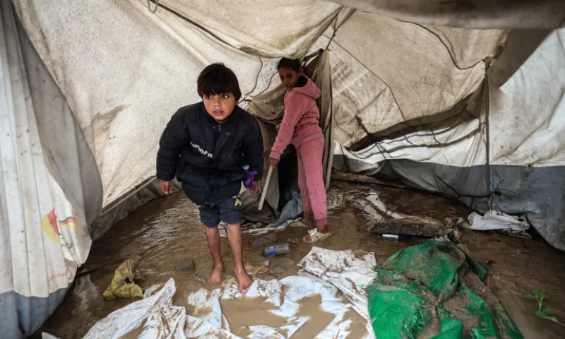 Another displaced Palestinian, Haitham Arafat, said he had lost his son, daughter and home during the war and continues to suffer amid the worsening conditions. “I fled to this place. Does this mean the war is over?” he asked. “No, we are still suffering. We haven’t slept for two days because of the heavy rain.”