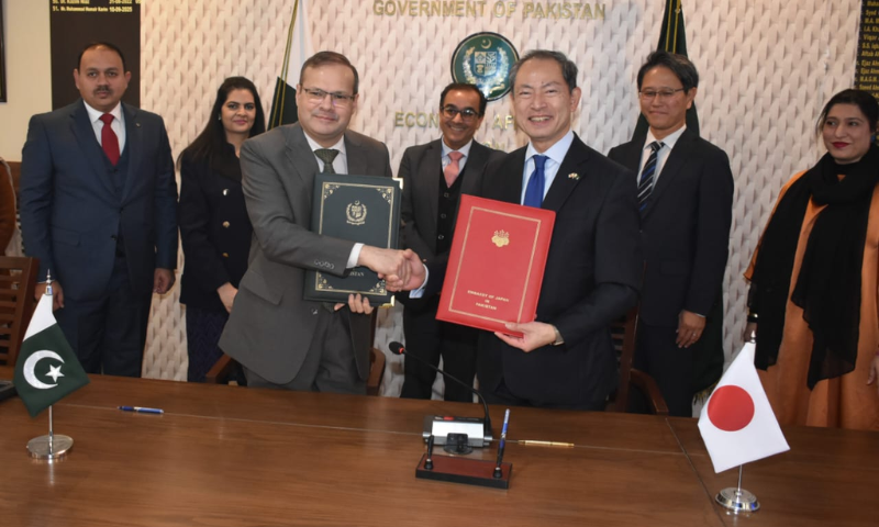 The exchange of notes for the grant took place in Islamabad on Tuesday between Mr. Akamatsu Shuichi, Ambassador of Japan to Pakistan, and Mr. Muhammad Humair Karim, Secretary of the Ministry of Economic Affairs. Subsequently, the Grant Agreement was signed between Mr. Miyata Naoaki, Chief Representative of the Japan International Cooperation Agency (JICA) Pakistan Office, and Mr. Miran Mohiyuddin Soomro, Senior Joint Secretary of the Ministry of Economic Affairs.