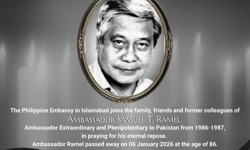 Islamabad, January 14, 2026: The Philippine Embassy in Pakistan has conveyed its deepest condolences to the family, friends, and colleagues of Ambassador Samuel T. Ramel, a distinguished career diplomat who passed away on January 6 at the age of 86.