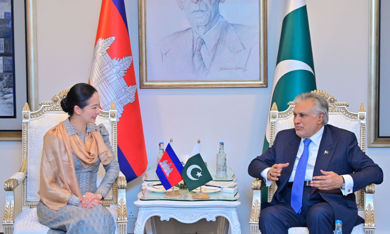Islamabad, February 10, 2026: Deputy Prime Minister and Foreign Minister Senator Mohammad Ishaq Dar received Cambodia’s Minister of Commerce, Cham Nimul, at the Ministry of Foreign Affairs, reaffirming both countries’ commitment to strengthening bilateral relations.