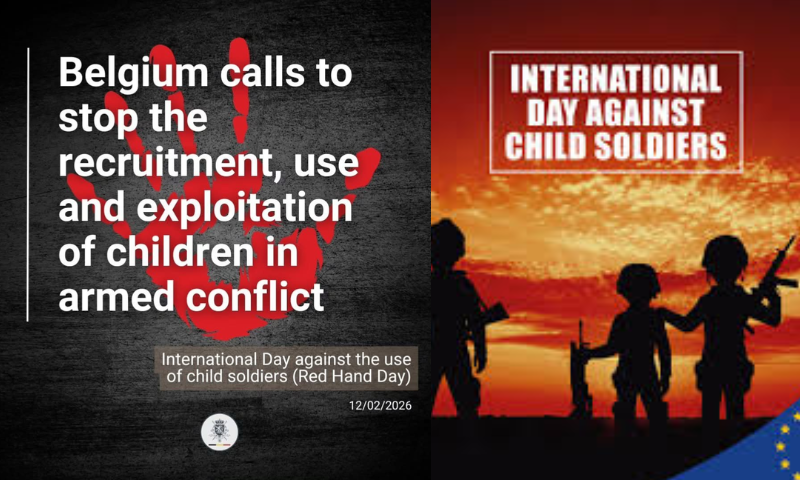 Brussels, February 12,2026: Marking the International Day Against the Use of Child Soldiers, Belgium reaffirmed its unwavering commitment to safeguarding children affected by armed conflict, emphasizing that every child deserves safety, education, and hope — never violence or exploitation.