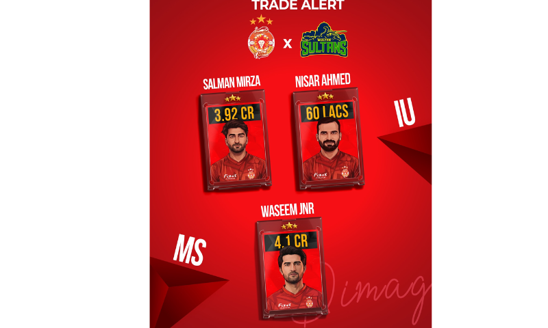 In return, United acquired Salman Mirza, who had been retained in the Diamond category by the Sultans — formerly known as Sialkot Stallionz — for Rs39.2 million. To balance the salary cap difference between the two players, Islamabad United also secured the services of emerging batter Nisar Ahmed for Rs6 million.