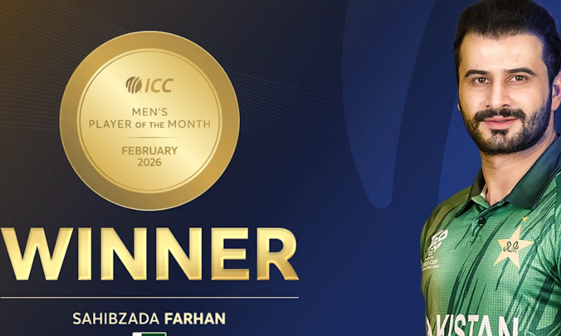 Dubai, March 23, 2026: Pakistan opener Sahibzada Farhan has been named the ICC Men’s Player of the Month for February 2026 following a record-breaking campaign at the ICC Men’s T20 World Cup 2026 in Sri Lanka.