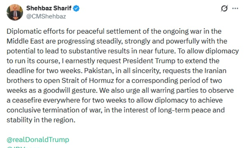 Appealing directly to Donald Trump, PM Shehbaz requested a two-week extension of the current deadline, emphasizing that such a move would create space for negotiations to succeed.