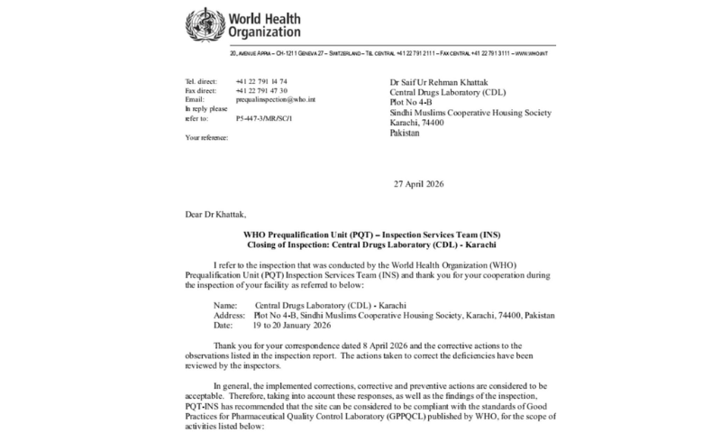 With this certification, CDL joins an elite group of global laboratories authorized to test medicines for WHO procurement. It can now also evaluate WHO-prequalified drugs, with its test reports recognized internationally—significantly enhancing Pakistan’s credibility in the global pharmaceutical landscape.